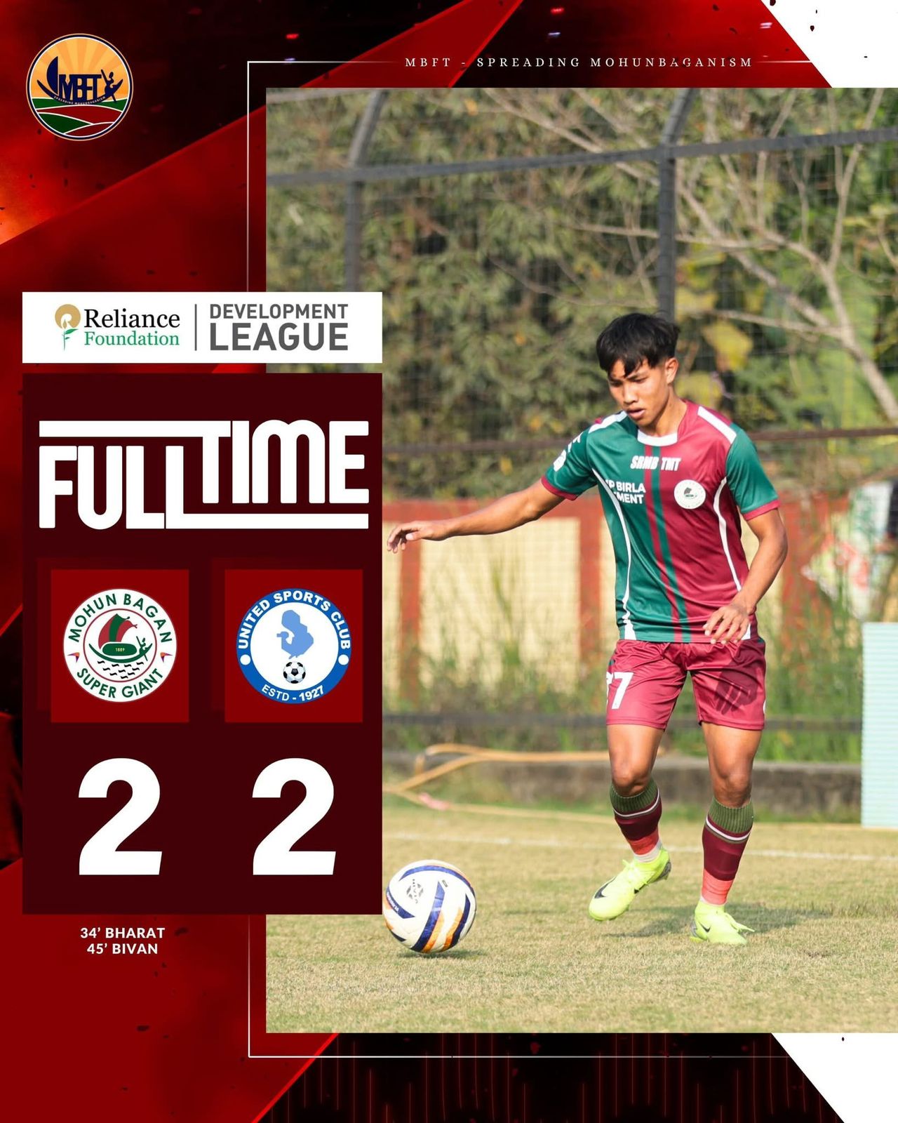 Kolkata: Mohun Bagan dropped crucial points once again in the Reliance Foundation Development League (RFDL), settling for a dramatic draw against United SC after conceding a late equaliser.