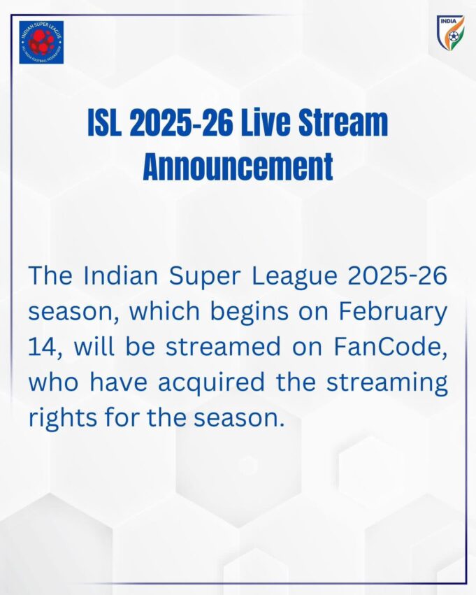 AIFF Deputy Secretary General M. Satyanarayan said, “We are pleased to have concluded the ISL media rights process and to partner with FanCode, one of India’s leading sports platforms. FanCode’s focus on accessibility and fan experience aligns with our objective of expanding the league’s footprint and engaging more football fans across the country.”
